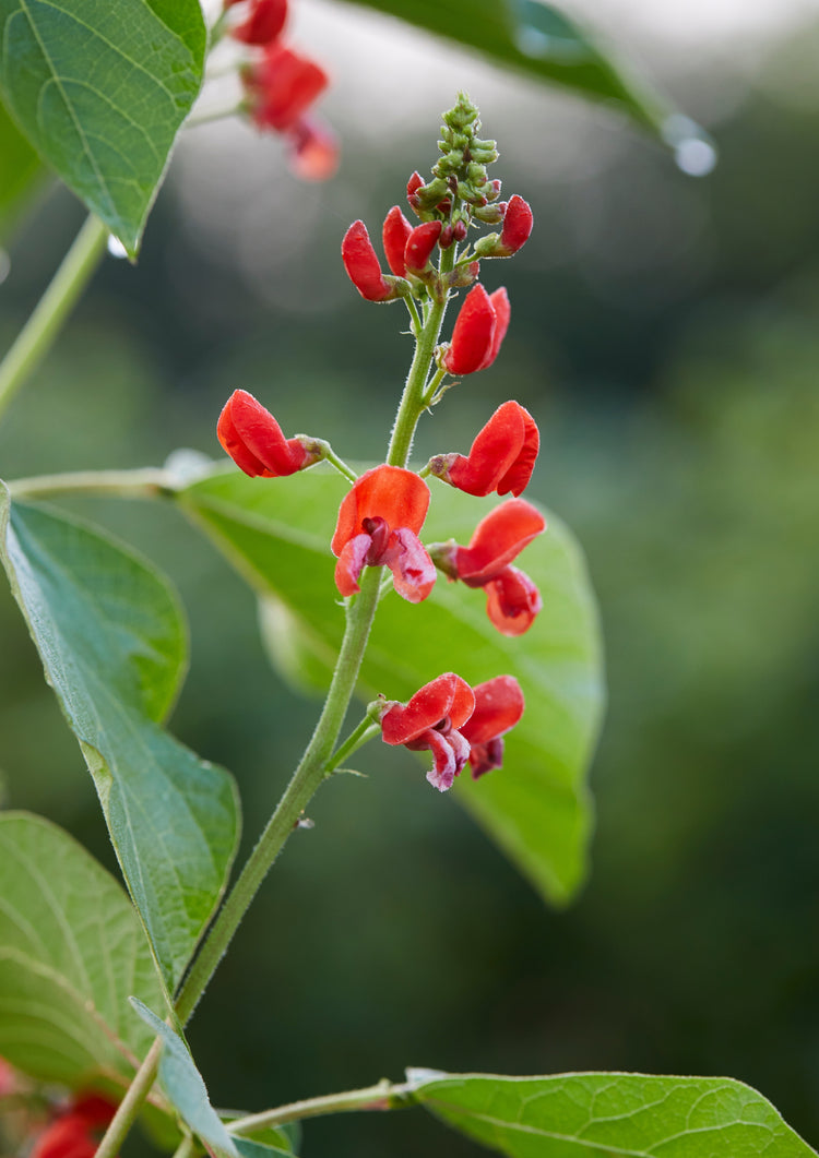 Runner beans are lovely climbers producing long, slender green pods. Their flowers are vibrant red or white, trumpet-shaped, attracting an array of pollinators and adding a fabulous splash of color to gardens.