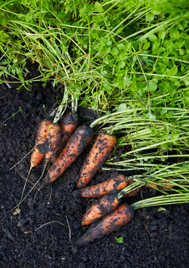 Carrots, domesticated from the wild species, Daucus carota that grow in the water meadows here at Thyme were originally grown for their seeds and leaves. Careful selection over the years for a less woody tap root has given us this familiar bright and cheerful root vegetable.